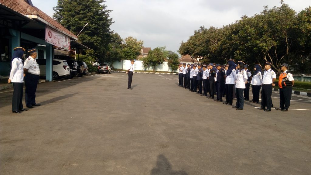Dipimpin Kadishub, Bapak M.Sidqon Effendi, S.SiT, MT., seluruh karyawan karyawati Dinas Perhubungan Kota Salatiga melaksanakan apel pagi di halaman kantor Dinas Perhubungan Kota Salatiga.