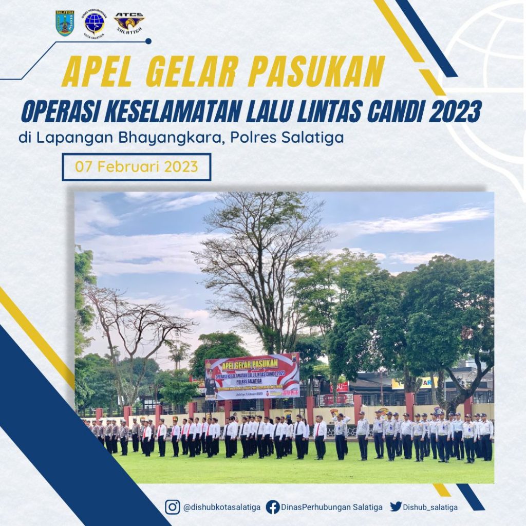 Dinas Perhubungan Kota Salatiga ikut serta dalam kegiatan Apel Gelar Pasukan Operasi Keselamatan Lalu Lintas Candi Tahun 2023 di Lapangan Bhayangkara Polres Salatiga.