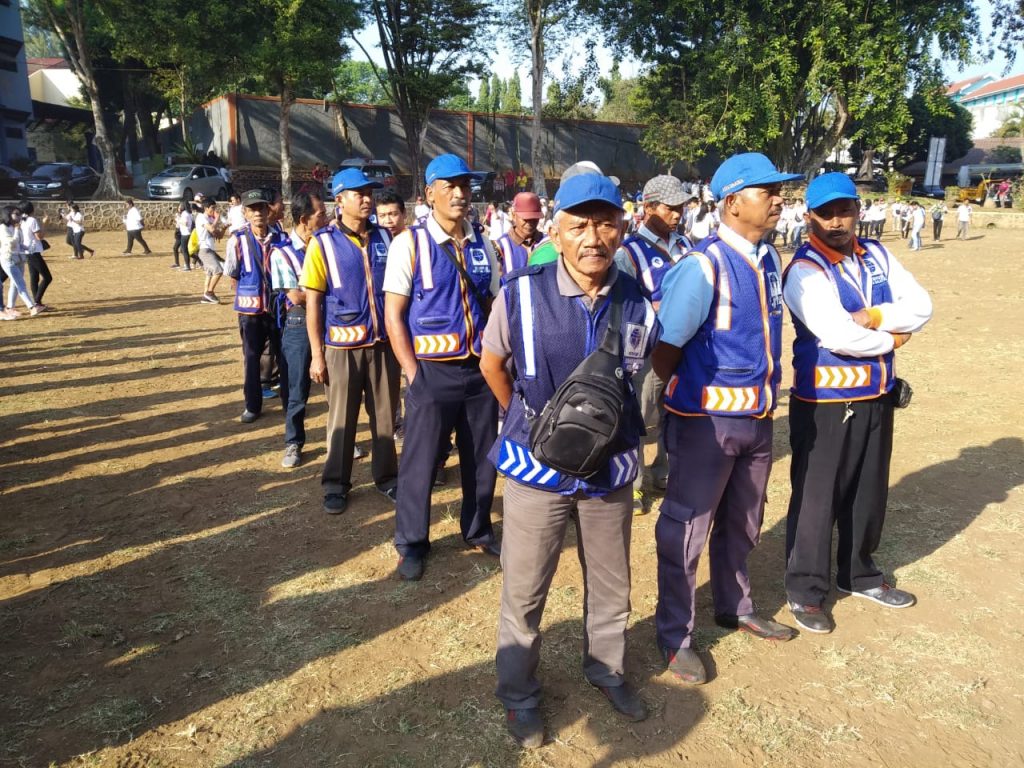 Beberapa Juru Parkir Kota Salatiga mengikuti kegiatan pungut sampah yang digelar oleh kampus UKSW dengan Dinas Lingkungan Hidup (DLH) Kota Salatiga, memunguti sampah yang berserakan di beberapa lokasi di Kota Salatiga, Jawa Tengah (Jateng), Sabtu (12/9/2019). Kegiatan ini dilakukan dalam rangka memperingati World Cleanup Day (WCD) atau Hari Pungut Sampah Sedunia.