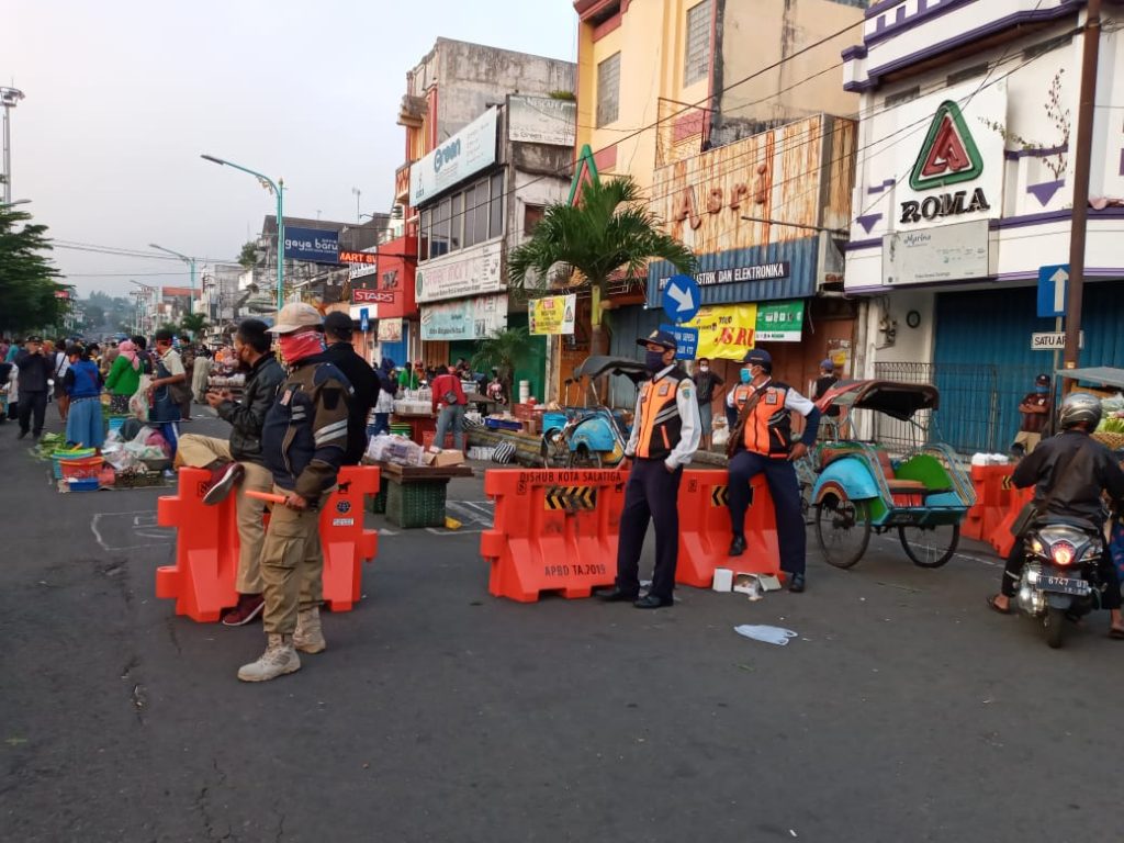 Dinas Perhubungan (Dishub) Kota Salatiga, melakukan penutupan ruas jalan di Jalan Jenderal Sudirman selama diberlakukannya penataan Pasar Pagi di ruas jalan Jenderal Sudirman.