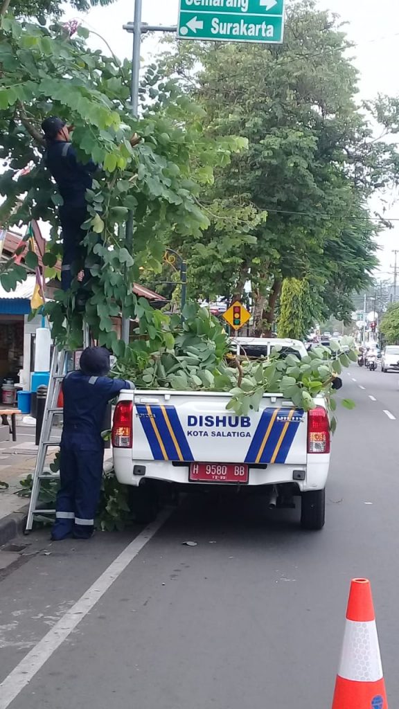 SALATIGA– Persiapan Libur Natal & Tahun Baru, Dishub lakukan Pembersihan Ranting Pohon yang Menutupi APILL. Kasi MRLL Bidang Lalulintas Dinas Perhubungan Kota Salatiga Dwi Nopy Awatiy, S.SiT, MT. mengatakan bahwa Dinas Perhubungan Kota Salatiga akan menyiapkan segala sarana dan prasarana lalulintas untuk mendukung lancarnya arus lalulintas. Salah satu sarana dan prasarana lalulintas yaitu adalah lampu APILL. Banyak dari lampu APILL di Salatiga ditutupi oleh sejumlah ranting, sehingga menganggu pengguna jalan dalam ketertiban lalulintas. Untuk itu, Dishub Kota Salatiga melakukan pemangkasan ranting pohon pada APILL di sejumlah titik APILL di Kota Salatiga. Salah satunya adalah di sepanjang jalan Ahmad Yani Kota Salatiga Selasa, 03/12/2019. Hal ini bertujuan untuk persiapan dalam rangka menghadapi libur natal 2019 dan tahun baru 2020.