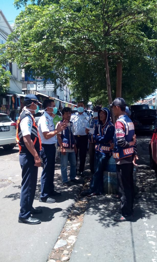 Personil Dishub Kota Salatiga mendatangi terminal angkota dan mendatangi juru parkir guna menyampaikan beberapa anjuran dan tips-tips untuk mencegah penyeberan virus covid-19.